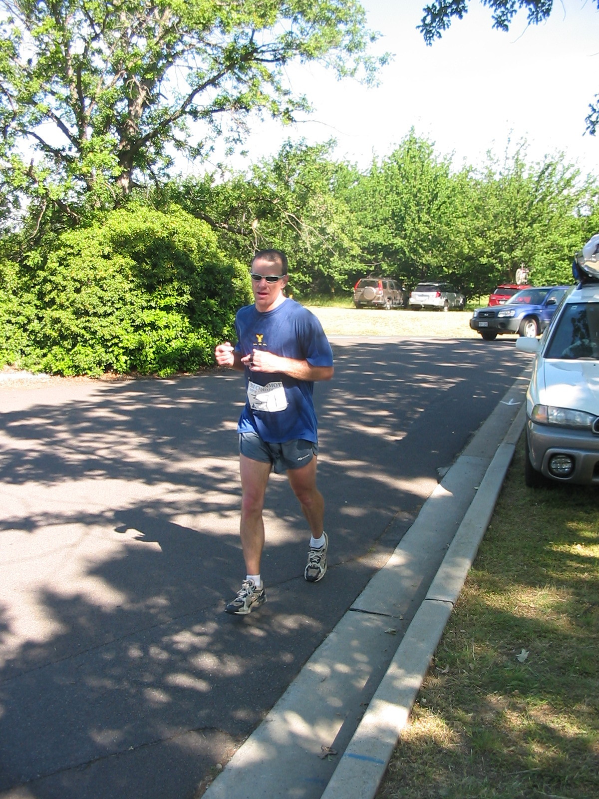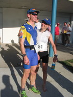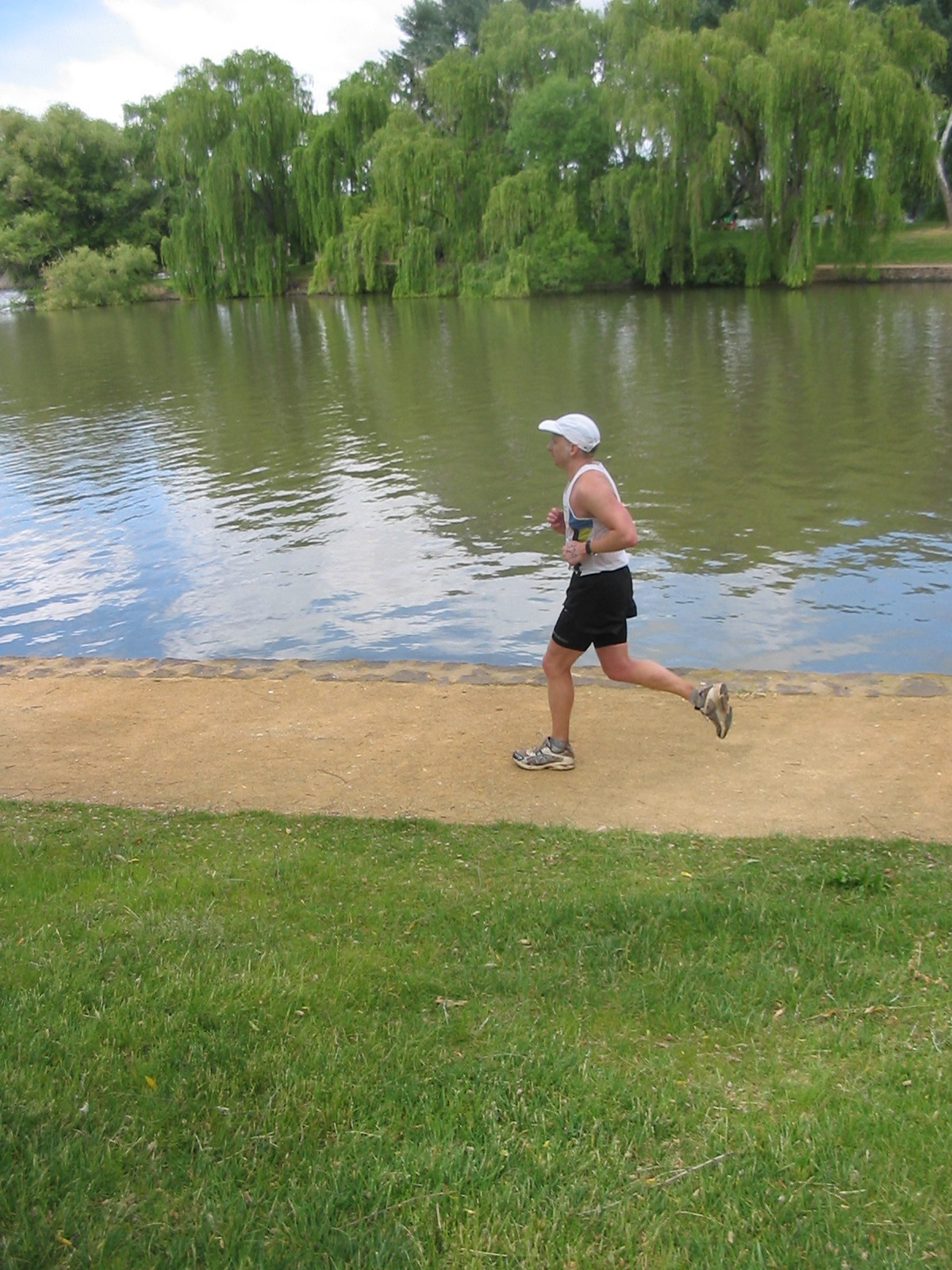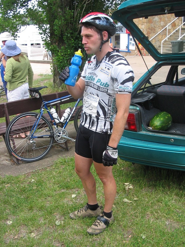 After a rather good race last year I was happy as heck that Shanyn and Bruce were both keen to team up with me again this year for the Triple Tri. Though there is not much technical or challenging mountain biking in this event, and it is called a triathlon, every time I compete I seem to have even more fun. There really is something special about this event. The feeling on the day with everyone out there, the team work, the camaraderie, the tour of Canberra, the pain, who knows but it is a hoot. I have had a cold for about two weeks now, and I had been hoping it would disappear by the time the triple tri rolled around. I was feeling pretty average when I woke up on Saturday morning but still hopped it was the tail end. I suppose now, writing this a few days after the race, with the cold still here I was not that lucky. I should think myself lucky I was able to perform as well as I did in the race this year, slower than last year, but not terribly slow. Fortunately as I mention above I had Shanyn and Bruce around, both of whom are remarkably fast, solid and consistent in their performances. We met up on Saturday afternoon at the registration and sat around drinking coffee and talking about the race and other races and catching up. Team strategy as always was to have fun so we did not have to sit around talking team tactics or anything, though we hoped to at least get a similar result to last year. At the end of the race last year Bruce said never again would he want to be on a fast team and it was all too hard, Shanyn and I are lucky he forgot that and was keen to compete once more this year. Bruce has been doing a fairly large number of distance running events and long run training in the last few months so he felt rather keen for the triple tri this time around. Shanyn competed in a 9km lake swim the weekend before the triple tri finishing very well, and not even using the advantage of wearing a wetsuit. I competed in the Highland Fling 100 KM mountain bike race the weekend before also, however I took it easy all day then in the hopes I would not further aggravate the cold I had. I decided to ride my duallie this year rather than the hardtail, partly because the gearing and bike in general are set up better for steep climbing, and partly because I have it specced with better race equipment and lighter than the hardtail currently. The team name this year would once more be "32 Flavours", because a) continuity in team members can suggest continuity in name, b) I have no imagination and c) all the reasons I had for choosing this name last year still apply. The line up this year as would be expected was again Shanyn in all three swims, Bruce in all three Runs and me doing the three Bike legs. We had discussed for a while the suggestion that Shanyn do the third Run leg, this would allow Bruce to go harder on the first two as he did not have to make it through the third. I tend to agree with the opinion that the hardest leg set in this race is the three runs, longer than a Marathon and over mountain tops, other steep hills and lots of rough terrain. Shanyn is a rather capable runner and had put a fairly good time in for a half Marathon earlier this year. Also the final run leg is possibly the easiest of the three (not as steep as leg 2 and not as long as leg 1), however the discussion became moot as Shanyn had acquired a knee injury recently and was unable to run on it. Ahh well no matter we were still going to have fun and Bruce was still keen. On the bike at around 5:30am to ride over to the start, I got there early enough this year to actually talk to Shanyn and a bunch of other people before they got the teams of three swimmers under way. The most important piece of information passed on to Shanyn, a reminder that we were here to have fun and the race got underway. Shanyn, consistent as always was out of the water in 21:27, 12 seconds faster than her time in this leg last year, this time the 4th fastest swimmer for this leg today and she had me on the bike just in front of Dave Osmond, reality realigned shortly afterwards as Dave got in front of me on the climb up to the bridge, caught up to Adrian and the other two and stayed in front of me from then on. I eventually passed 2 of the other riders tagged out of the water before me, but of course never saw Adrian again on the bike that day, or Davo for that matter. The course had changed a little this year and we would not have the rather fun (read mildly challenging) gutters to hop as we instead rode up through Uni of Canberra and into Gossans hill on the other side. I was feeling alright as I got over Aranda bushland and crossed under Caswell Dr into Black mountain reserve, it was at this point I had my shock of the day, as I crossed under Caswell Dr I saw another person in front of me who appeared to be going slower than I would expect anyone at this point in the field to move. I would not expect to catch up to any solos until the climb up Push Bike hill. It turned out to be Dave Baldwin, I passed him a few hundred metres later and had to ask if he was alright. I would expect under normal conditions, our team would not have passed him until the second triathlon, in one of Swim 2, Bike 2 or Run 2. Dave said he was cramping up and unable to move properly on bike or foot but said to keep going and he would battle on through. This was kind of mind boggling to see Dave back so far and suffering as much as this. On the way up Push Bike hill I had what has to be my most embarrassing crash for the year. I had walked the steepest 30 metres or so of the climb and decided to get back on and ride. I did not clip one foot in properly and was a little unbalanced as Is tarted to pedal, as it is very steep my balance got worse, and at uber slow speed I toppled sideways and fell with my bike on top of me all in slow motion. Getting unclipped and upright again I walked another 10 metres before getting on the bike and riding the rest of the way up the hill