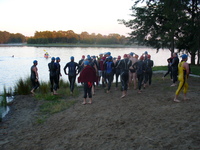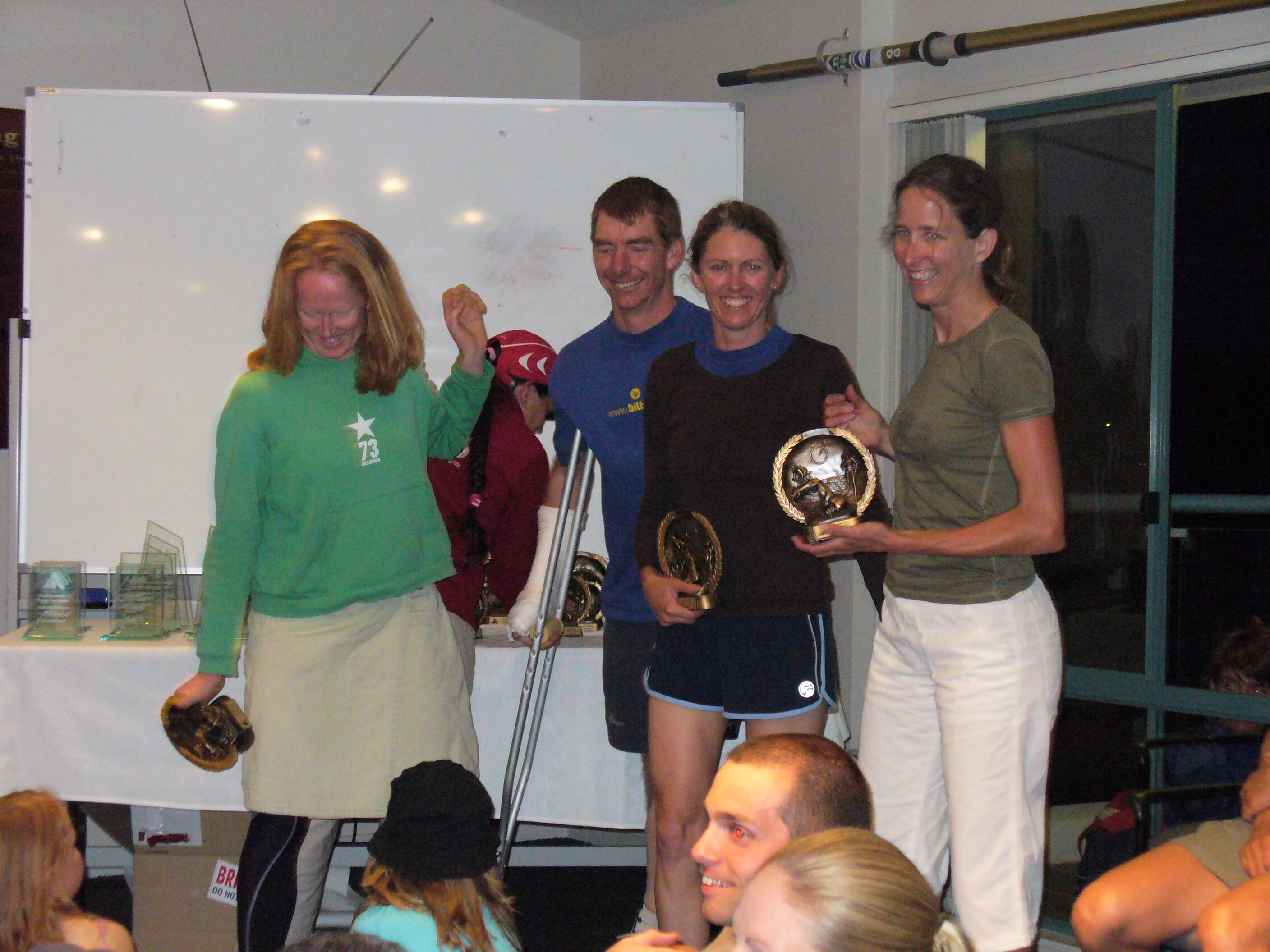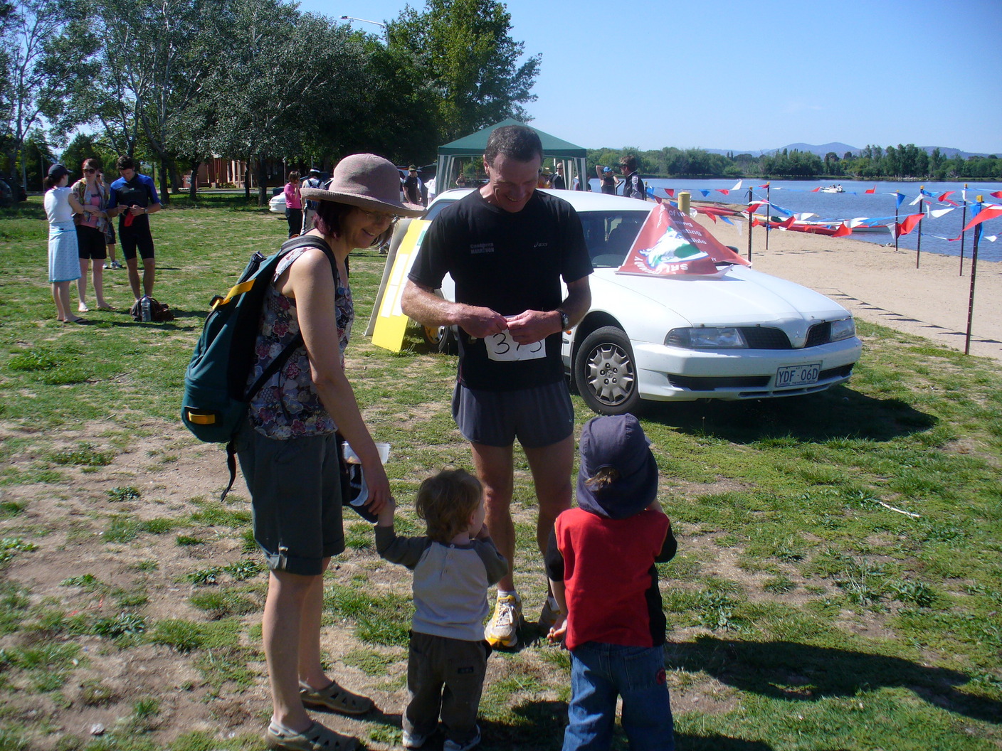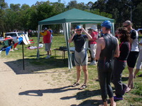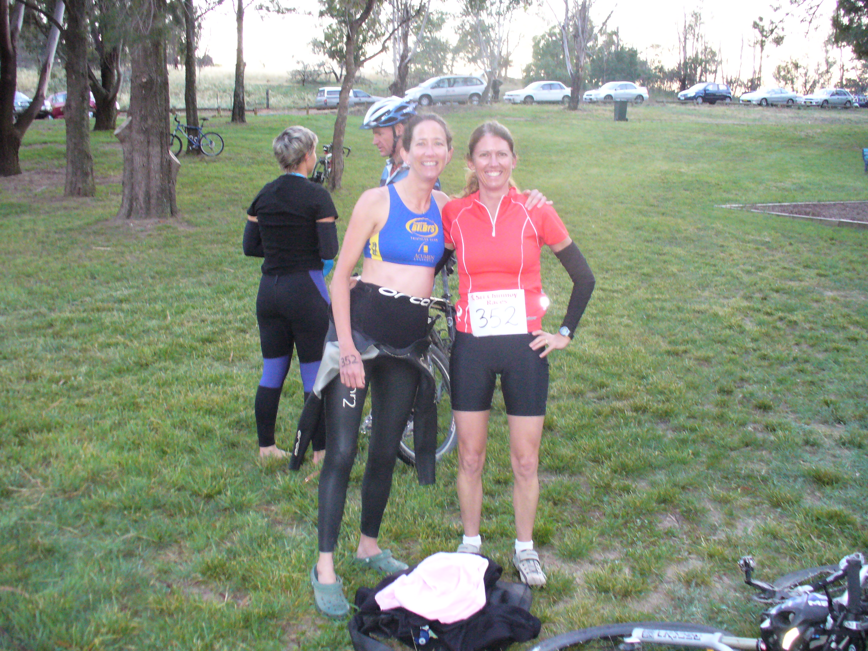 November, among other things, means the triple tri is on again. Last year I was doing a paddling course on Sunday mornings, however decided to take the triple tri day off to compete. This year Shanyn was doing the same course and decided it was better to keep up with the lessons. Thus we were without our super swimmer, possibly a good thing as the pressure would be off Bruce and I to try to keep up with such a good athlete. Of course this bought in a new problem for this year, we needed to find a swimmer. Sarah had originally been planning to compete in a team of three girls, doing all the rides and seeing if they would be good competition for Libby, Michele and Sue's team. However as Larissa and I both noted on the day she came up with another random excuse not to do the event. However this meant Sarah's housemate Larissa was available to swim in the triple tri. It was interesting when Sarah made the suggestion that Larissa could be our swimmer. Though the conversation was more along the lines of "Sarah: Larissa is still keen to swim in the triple tri, Steve: Larissa, Sarah mentioned you were keen to do the swims in the triple tri, how about it? Larissa: Sarah has an interesting interpretation of reality there". Fortunately for us Larissa was convinced enough that it would be a fun day out and agreed to come and swim for our team. Without Shanyn a team name change was in order so the Ani song "To The Teeth" was used, though the song is not really aligned with a sports event like the triple tri I thought the attitude in he title would suit the event well. "32 Flavours" would have to wait for another outing some other time. Over Larissa's claims of being slow and unfit Sarah continued to assure us Larissa was a gun swimmer. We were here for a fun day out, and due to not feeling the need to go quite so fast Bruce and I had been discussing mixing the legs up a bit this year. I have been doing 30 or 40 KM of running a week for a while, and Bruce has not been doing his typical huge amount of hilly running in preparation for the race, though he had recently purchased a very nice new Cervelo R3 road bike and thus been riding a lot. Due to this we thought it would be a good idea to swap legs, so we (well I) decided to swap the last two legs. The red hill run leg has always been the most appealing run leg in the race for me, this meant we would swap the last two legs of the race and send Bruce out for the final bike leg. As much as I like the Majura and Ainslie run, I am not a good enough runner to give that 20 KM run a good stab and really do not like the idea of running over Mt Taylor and along the bike path in the middle of a hot day. As it turned out, Sarah was correct, Larissa is indeed a gun swimmer and we were still up near the front of the race all day, however this was still unknown and we lined up to compete with a new team and hopefully the same fun attitude towards the race we bring with us every year. Jane, my sister, was once more coming down from Sydney to support us at the race and drive us around. She was not at the team meeting in civic the day before, however that mattered little as we were all fairly settled about how we were going about the race. On race day I drove out to Gunghalin to pick up Jane then met with Larissa at the first swim start at around 05:40am. The Solos were already in the water and we had a few minutes before our race started. Davo got away first on the bike as John had a fast swim (as always). Shanyn is normally out of the water near John, I had another minute or two this year so did not feel any need to try and keep up with Davo on the bike. Larissa was through around tenth or so out of the water (as I have mentioned, definitely not slow). I hopped on the bike and headed off. I passed a few people, got passed by a few people and settled into the leg. I realised on the way through Gossans hill I had forgotten to have insulin before the ride, this meant my blood sugar level would go high as my liver releases sugar while exercising and my muscles would not take on new sugar quickly with only overnight insulin left in my system. Oops, so I found I was unable to get full power out of my legs, however as I have not been riding much in the past year (too much paddling) so it could also be a function of not enough riding in my legs. Interestingly when I got to push bike hill I found one of the benefits of having a bit more running in my legs was I was able to charge up the hill much faster than anyone else near me, then riding the top half I got onto the bitumen with a gap on people I had passed (though some of them soon passed me at the top of the bitumen climb). On the descent I passed a few people, one of whom I felt I barged past a bit, when I saw him after the leg I apologised, he said it was cool and he was surprised to see someone pass that fast. As I rode through the single track in Bruce Ridge I caught up with Kerrie Muir, this was fantastic to see, another female solo competitor out there having fun on the course. Around 4 years ago Kerrie and I had discussed the idea of doing the triple tri solo, we sort of suggested to each other we should both train up one year and compete solo. Kerrie has been doing some fantastic events this year, competing in and finishing both Geoquest and XPD so she had some endurance under her belt. Three days before the triple tri Kerrie sent me an email saying I had let my side of the agreement down. Gee Kerrie can I have a little more warning maybe? However it was fantastic to see her out there doing the race. You go girl. I passed Kerrie on single track and headed on toward O'Connor ridge and Lyneham Ridge. At the end of Lyneham ridge I came across Steve Barry, who much to my surprise was also solo. Yay another new competitor out there doing the race solo, go Steve. I cheered him on and he even sat on my tail for a little while on the bike path before backing off again. I already knew I was behind a 1h40 minute target time